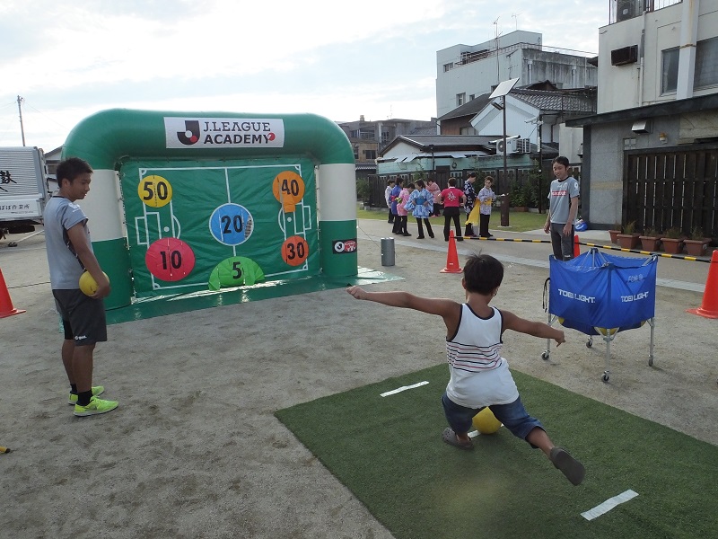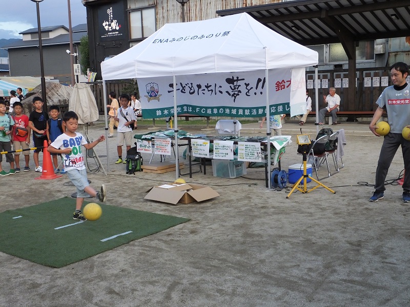 8月14日(金)恵那市の恵那駅前商店街で「第19回恵那まちなか市」が開催され、FC岐阜ぎふ元気活動課によるキックターゲットが行われました。