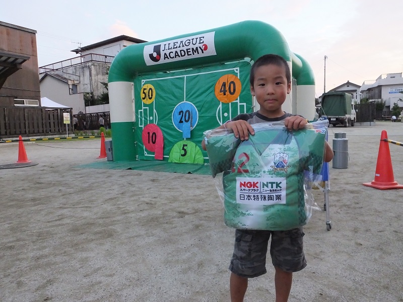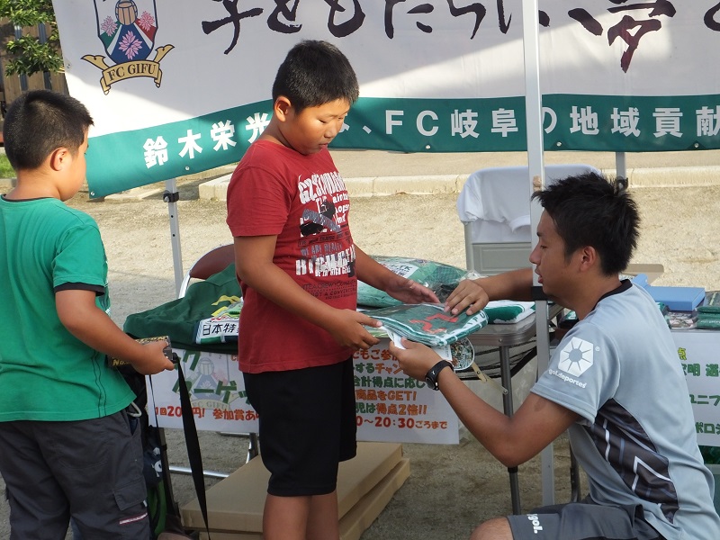キックターゲットはゴールの点数が書かれた的めがけて3球シュートして、合計得点に応じてFC岐阜のグッズや選手のサイン入りグッズをプレゼント!