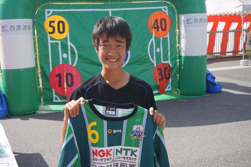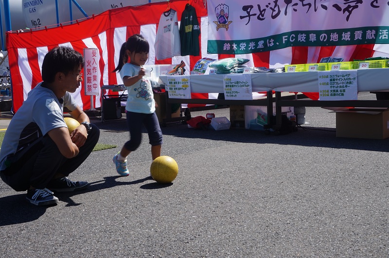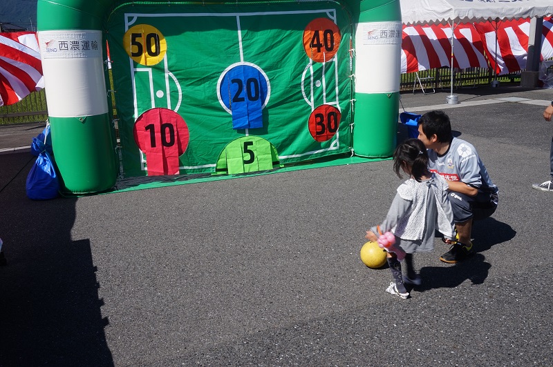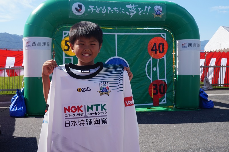 キックターゲットは数字の書かれた的に向かってボールを3回蹴り、合計得点に応じてFC岐阜のグッズや選手のサインなどの景品をプレゼント!