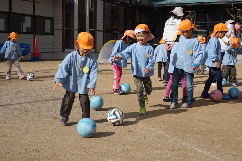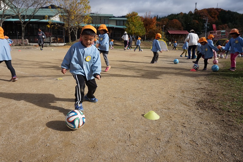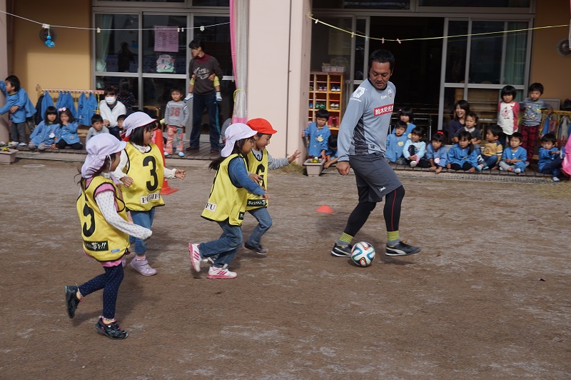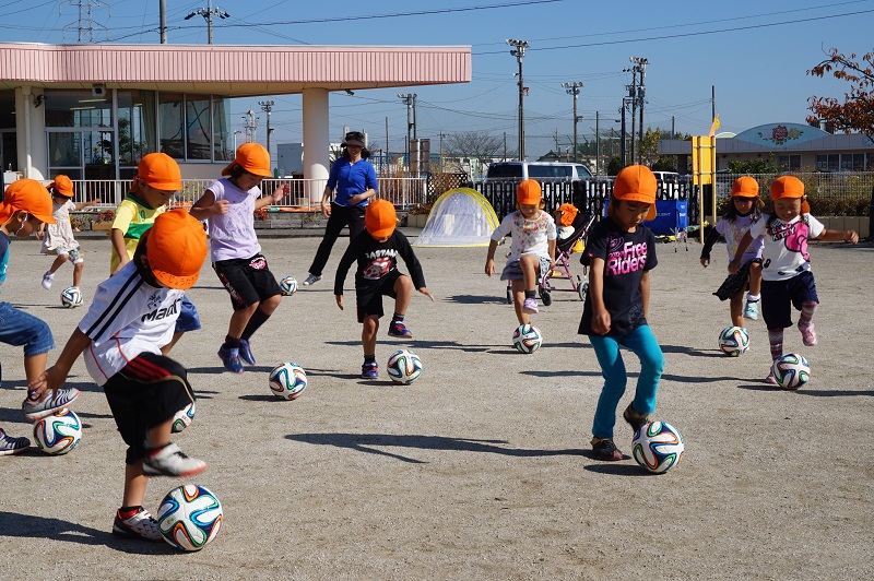 FC岐阜スクールコーチによる巡回サッカー教室「おじゃましマッスル」が11月に行われました。