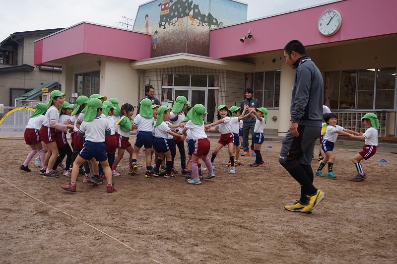 東幼稚園とまこと保育園が合同で行いました。新しい仲間と楽しく試合が出来ました。