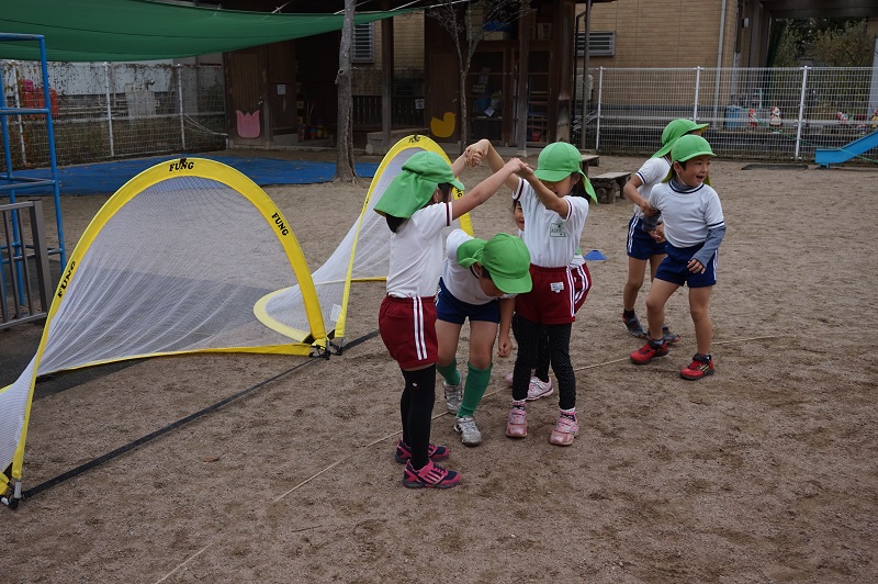 中で観ていた年少さんが動きのマネをするくらい、外では非常に楽しく体を動かすことができました!!