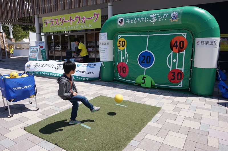 キックターゲットは3球ボールを蹴って獲得した得点に応じてFC岐阜グッズや選手のサイン入り色紙などをプレゼント!