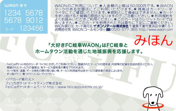 「サッカー大好きWAON」は、「いつもクラブを応援していたい」というサポーターの想いをクラブに届けるお買物カードです。サポーターはお買物や飲食などWAONの利用を通じて、シーズン中はもちろんシーズンオフ期間中もホームタウンの経済活性化やクラブの成長に関わることができます。「サッカー大好きWAON」のご利用金額の一部が岐阜県と、FC岐阜のホームタウン活動に役立てられます。