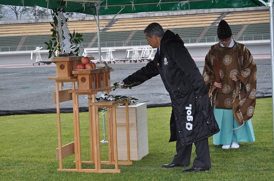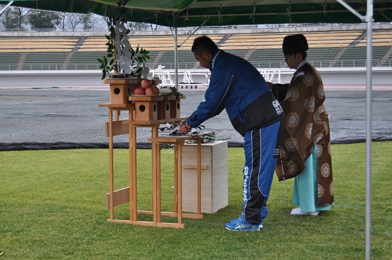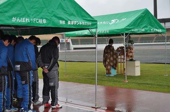 1月30日(金)、伊奈波神社(岐阜市)の神主様をお迎えして、FC岐阜のホームスタジアムである岐阜メモリアルセンター長良川競技場にて、2015シーズンに向けた必勝祈願、安全祈願を行いました。