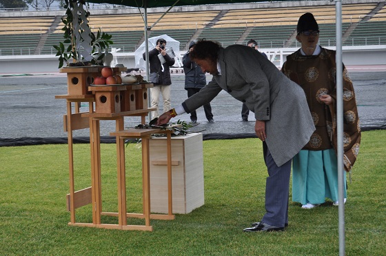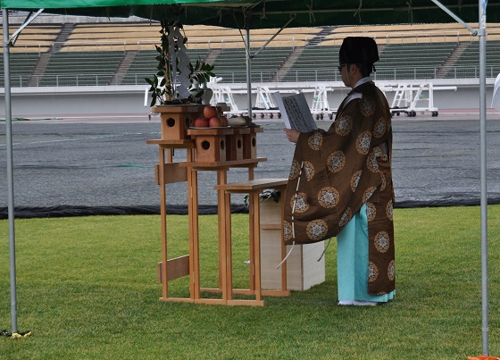 神主様には、チームだけでなく、スタジアムにご来場される皆様の安全も祈願していただきました。