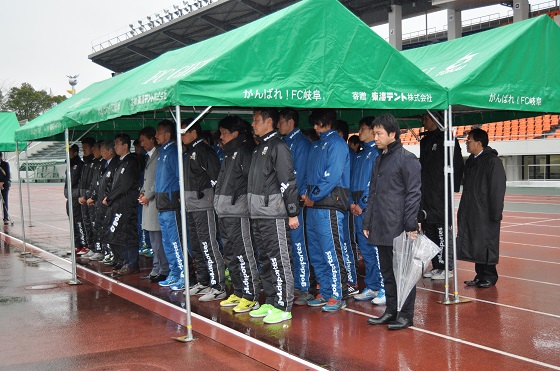 あいにくの雨となりましたが、祈願には、恩田聖敬代表取締役社長、星野鉃夫FC岐阜後援会会長、ラモス瑠偉監督、選手やコーチングスタッフ、クラブスタッフらが参加しました。