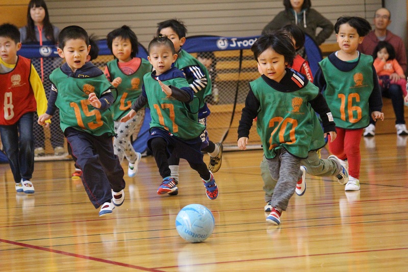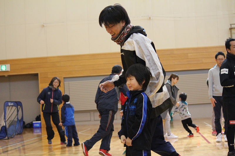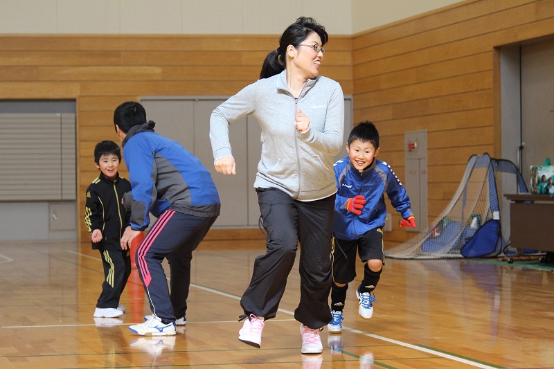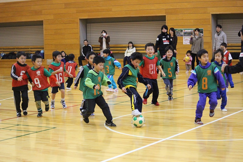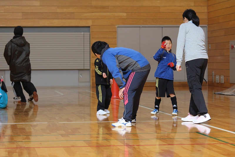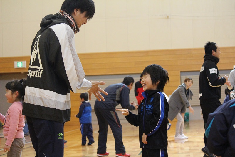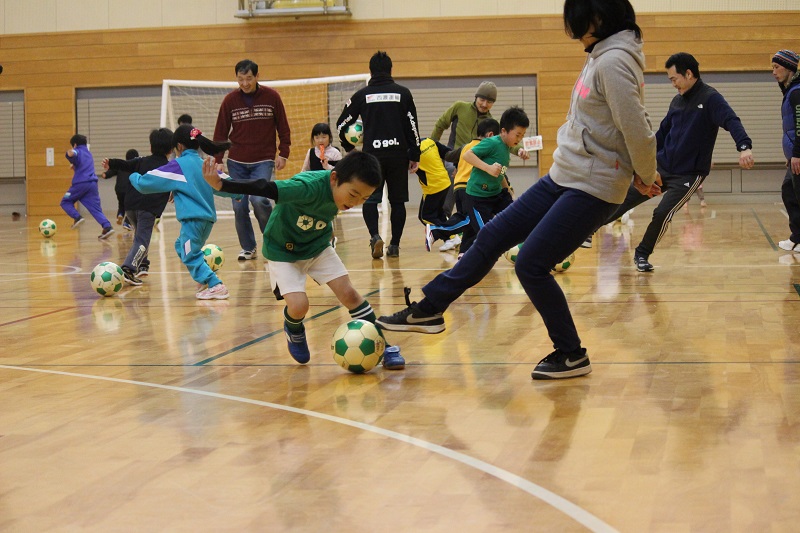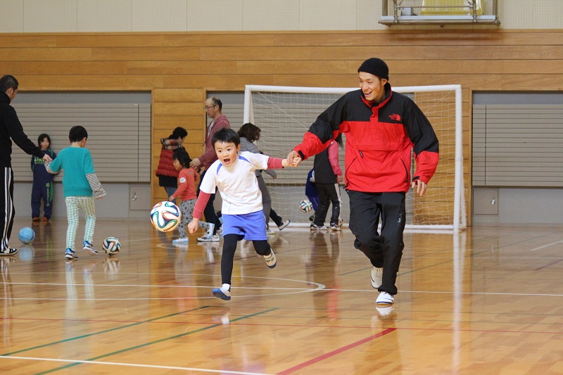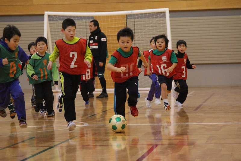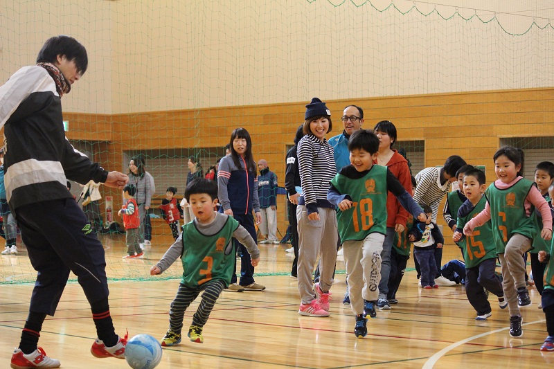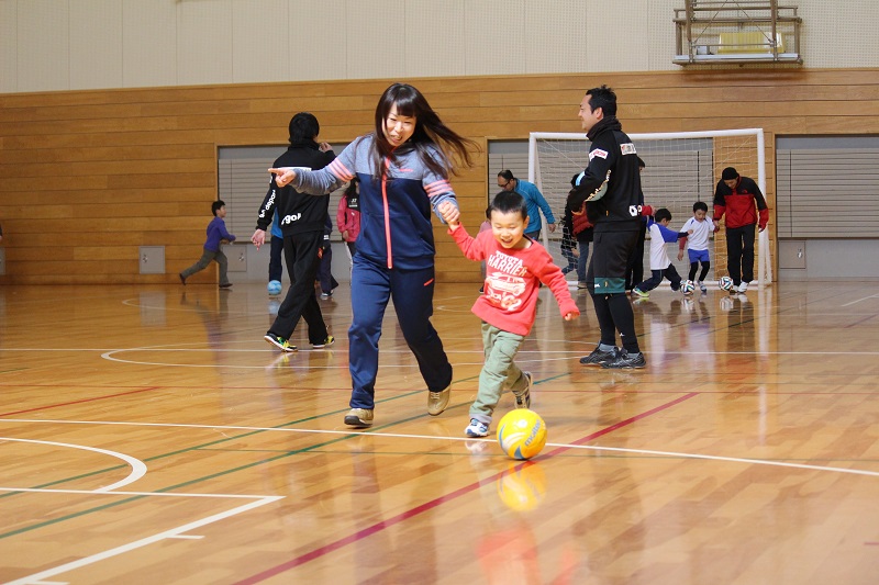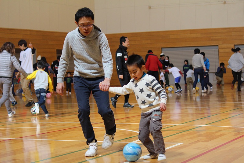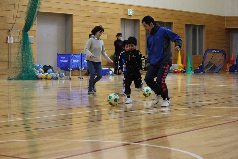 3月14日(土)高山市の飛騨高山ビッグアリーナで高山市とFC岐阜主催のサッカー教室が行われ、年中児から小学2年生の親子を対象に、FC岐阜のスクールコーチが指導しました。