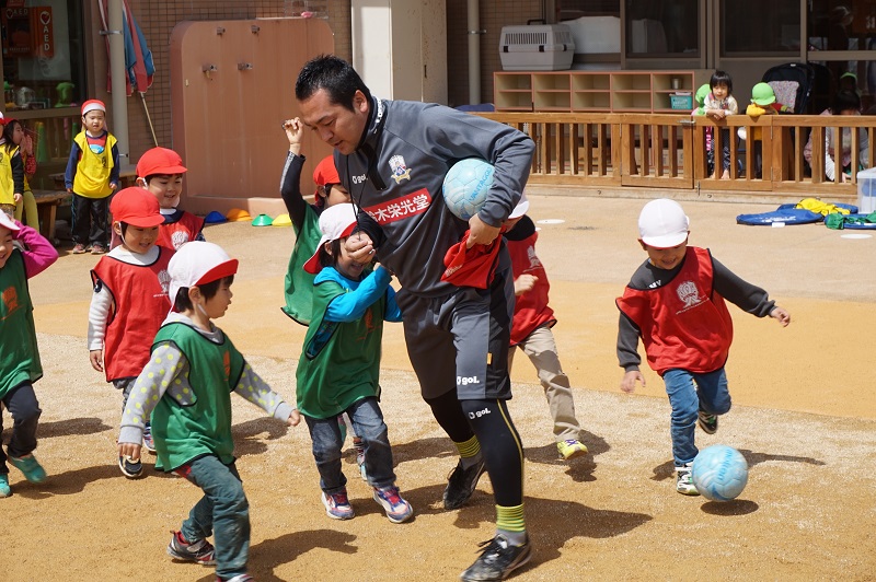 FC岐阜サッカースクールコーチによる巡回サッカー教室「おじゃましマッスル」が4月に行われました。