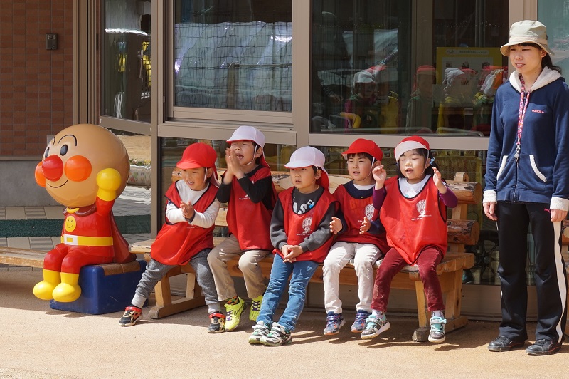 サッカーの試合にコーチが入ってパワーアップ!待っているときはお友だちの応援をしました。