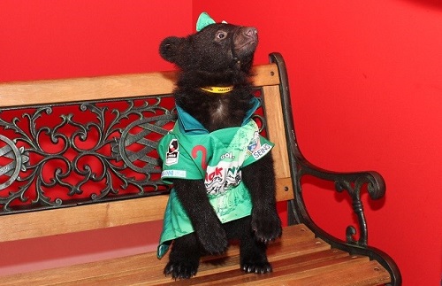 FC岐阜のユニフォームを着た 赤ちゃんクマ 「椿ちゃん」 との写真撮影会