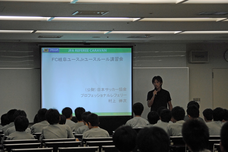 6月30日(火)FC岐阜U-18、U-15の選手を対象にルール講習会を実施しました。講師は今年もプロフェッショナルレフェリーの村上伸次氏にお越しいただきました。