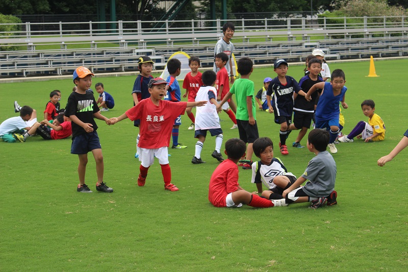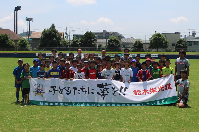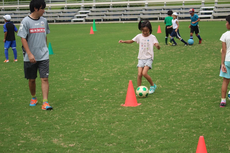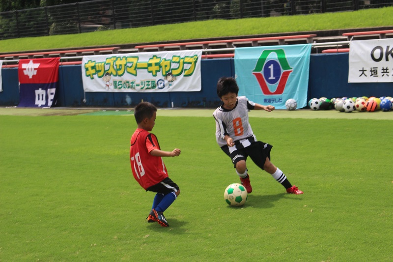 7月29日(水)岐阜市の長良川球技メドウで中日新聞社様、東海テレビ放送様主催による「キッズサマーキャンプ2015」が行われ、FC岐阜サッカースクールコーチによるサッカー教室が行われました。