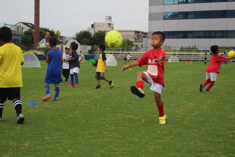 2年生の担当は野田コーチ。ボールを使って投げたり、蹴ったり運動しました。