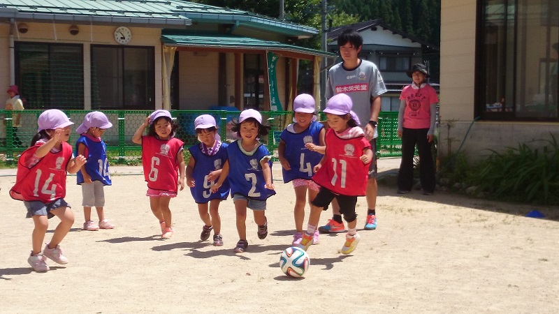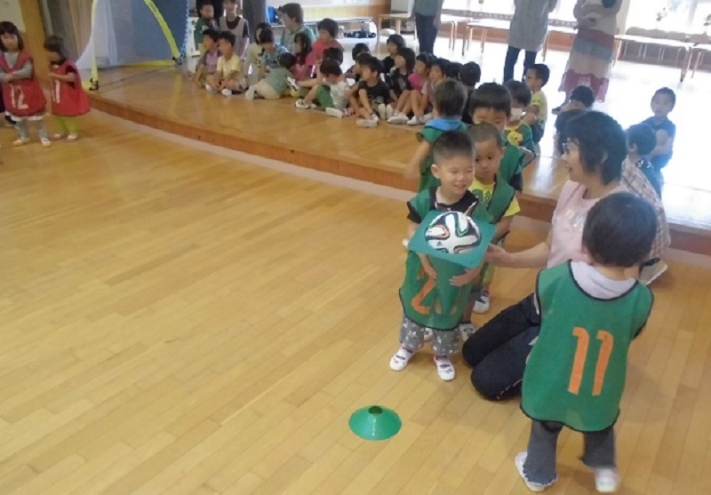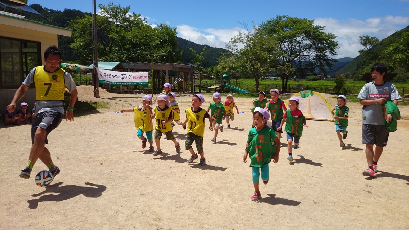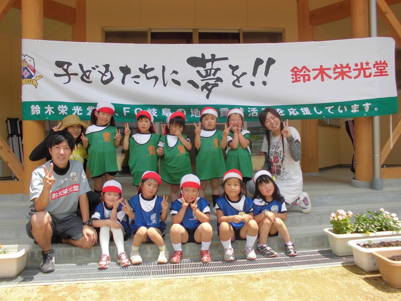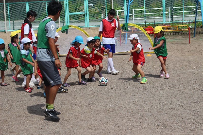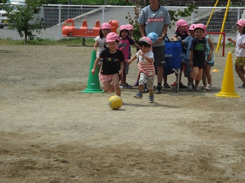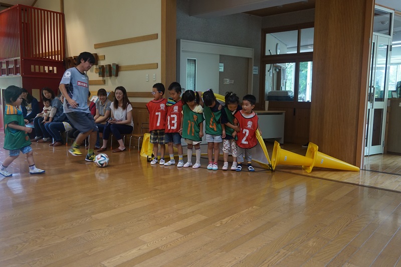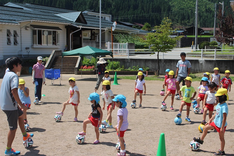 FC岐阜スクールコーチによる巡回サッカー教室「おじゃましマッスル」が7月に行われました。