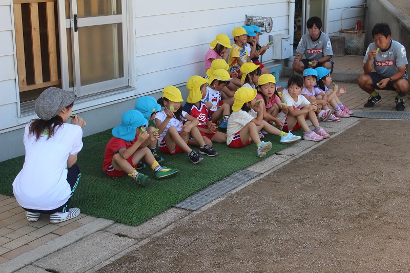たくさん汗をかいたので水分補給。なんと、“給水”タイムならぬ“きゅうり”タイムです!
