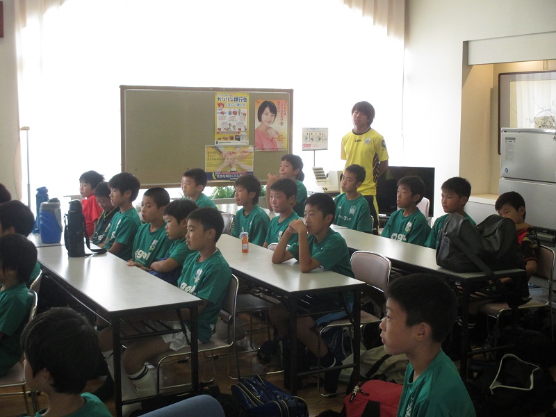 宿舎に移動し夕食をとった後には、トップチーム選手による講話を行いました。