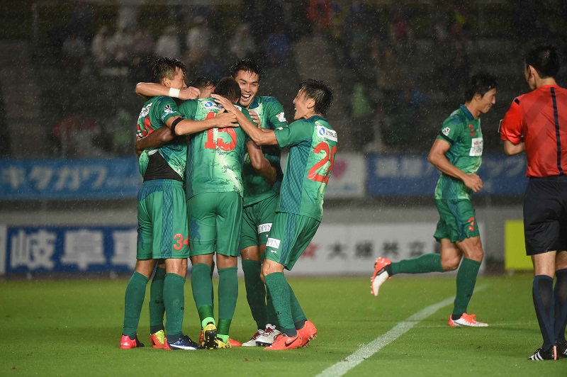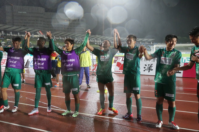 試合は2位の磐田に主導権を握られながらも風間選手と髙地選手のセットプレーからオウンゴールを呼び込み、