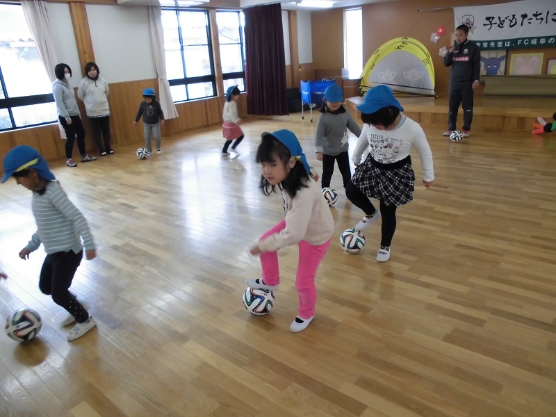 FC岐阜スクールコーチによる巡回サッカー教室「おじゃましマッスル」が1月に行われました。