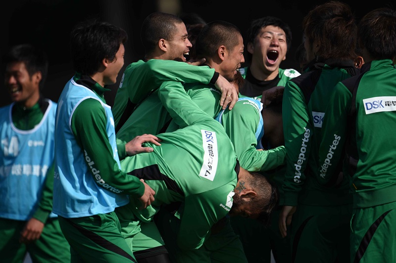 最後のキッカーは難波宏明選手。ここでラモス監督からの提案により勝負をすることに。難波選手が決めれば選手の勝ち、外せばラモス監督・GKの勝利です。
