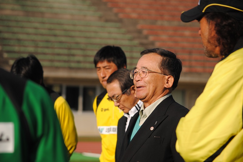 練習前に宮田社長と村井本部長・後援会事務局長より、選手たちへ、シーズンに向けキャンプを充実したものにしてほしいなど、激励の言葉をいただきました。