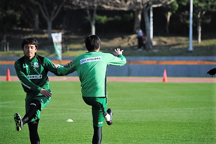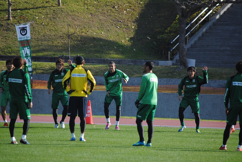 まずはウォーミングアップ。昨日の試合の疲れもあるため、しっかりと体を動かしました。