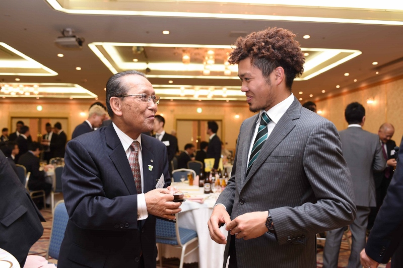 その後、選手がそれぞれの選手カードを手に、ご出席の皆さまにご挨拶させていただきました。スポンサー・株主の皆様からは今シーズンへの期待の言葉をいただいていました。