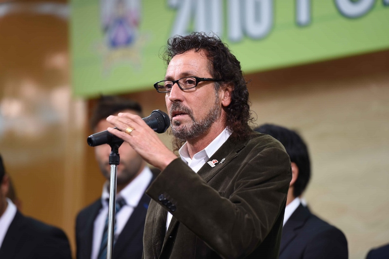 曲が終わると、もう一度選手とスタッフ、そしてラモス瑠偉監督が登壇し、髙地系治選手とラモス監督から、日頃の御礼、今シーズンに懸ける意気込みをお話しさせていただきました。