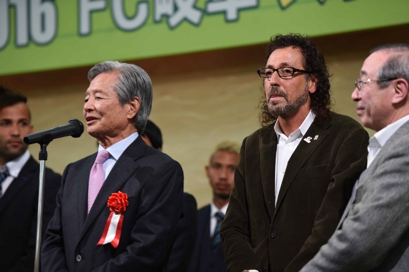 そして岐阜県知事 古田肇様とトップパートナーの日本特殊陶業株式会社 尾堂真一様より、チームに激励のお言葉をいただきました。