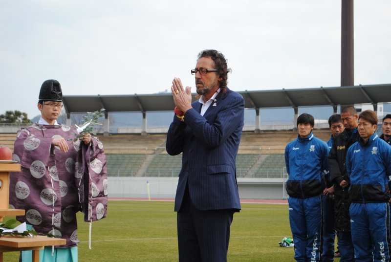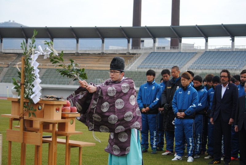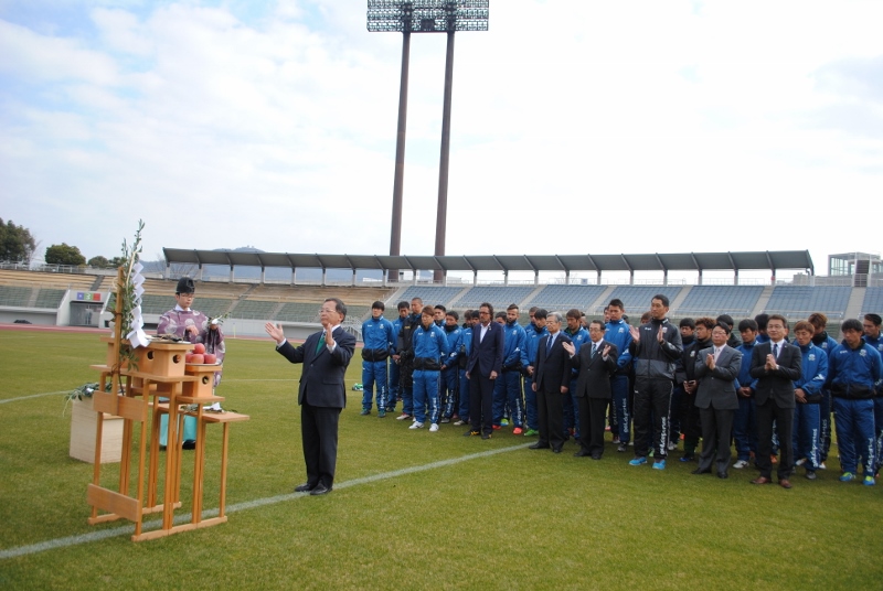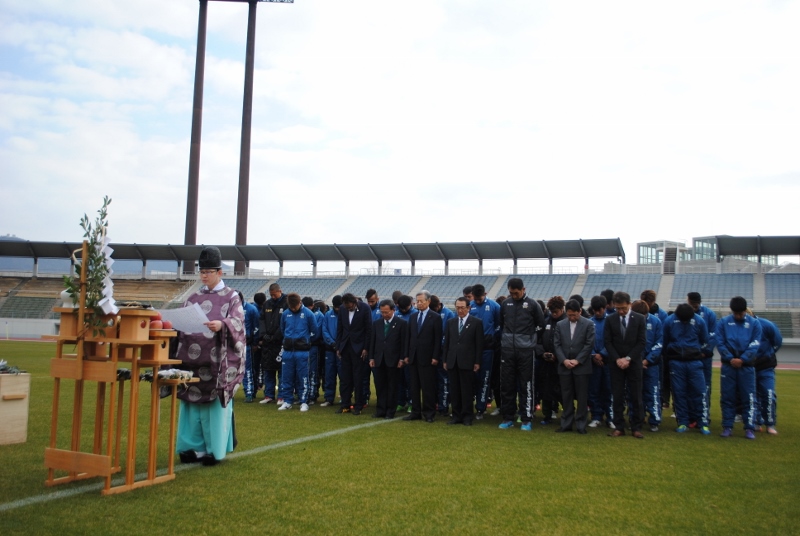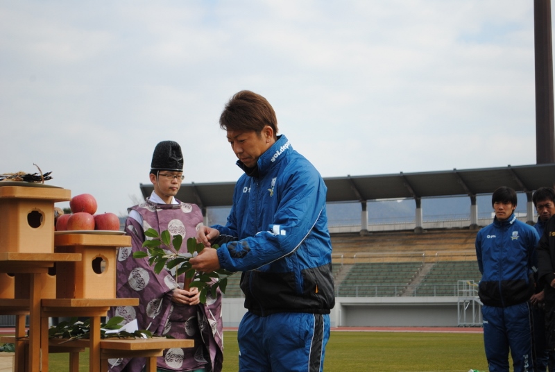伊奈波神社(岐阜市)の神主様をお迎えして、FC岐阜のホームスタジアムである岐阜メモリアルセンター長良川競技場にて、必勝祈願および安全祈願を行いました。