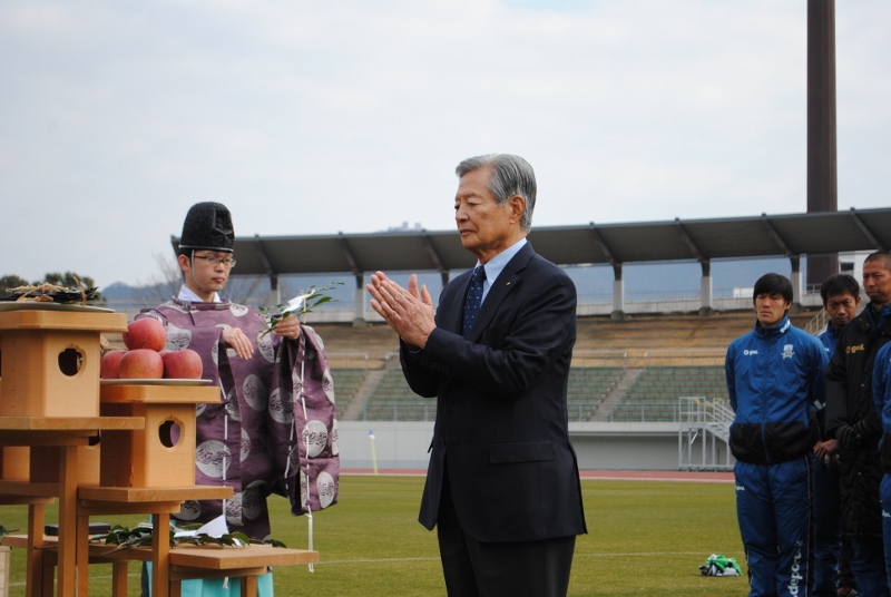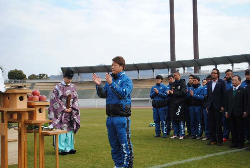 祈願には、宮田博之代表取締役社長、星野鉃夫FC岐阜後援会会長、ラモス瑠偉監督、選手やコーチングスタッフ、クラブスタッフらが参加しました。