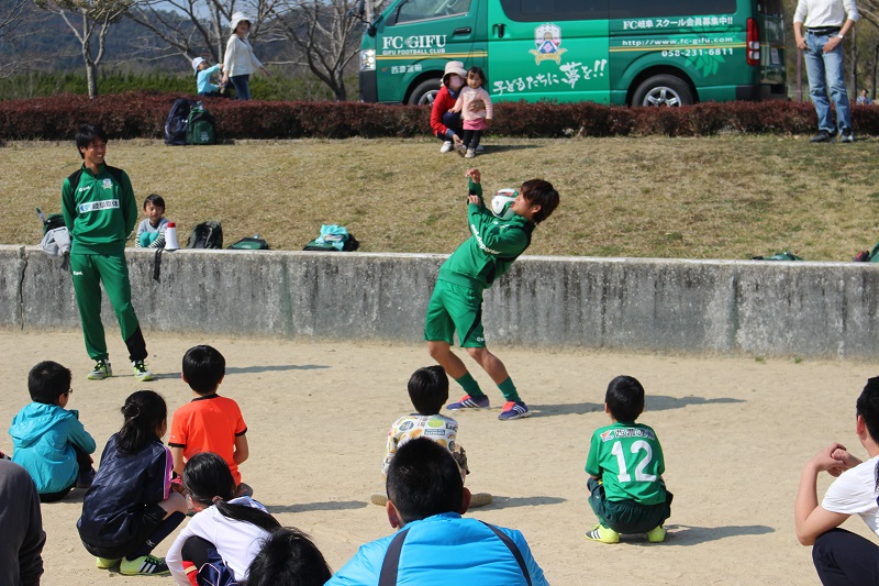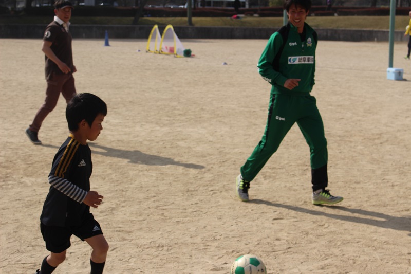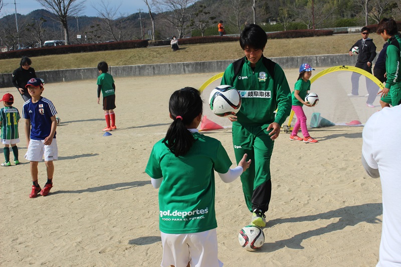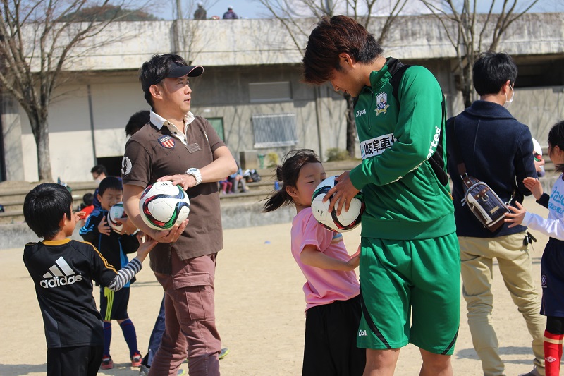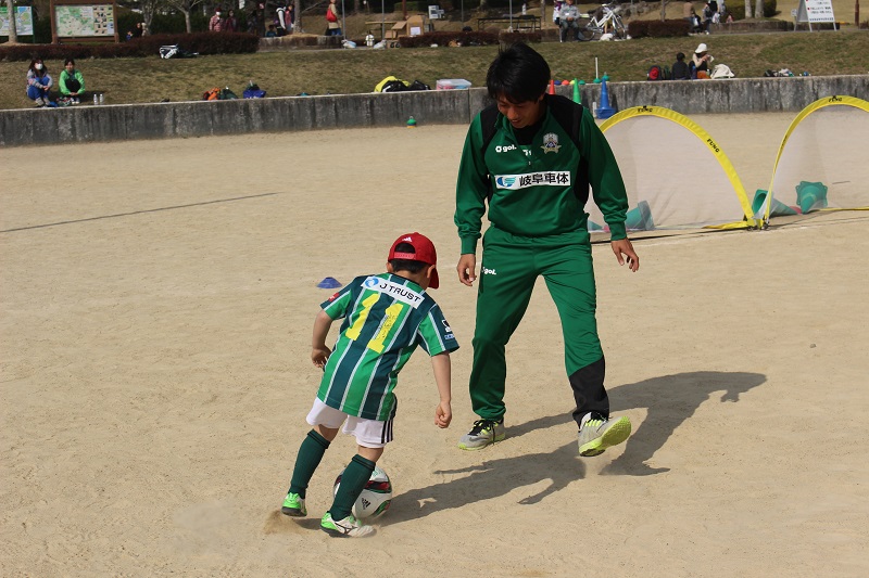 3月27日(日)岐阜市にある岐阜ファミリーパークで一般財団法人岐阜市みどりのまち推進財団主催の「FC岐阜親子サッカー教室」が開催され、鈴木潤選手、小川雄大選手とFC岐阜スクールコーチによるサッカー教室が行われました。