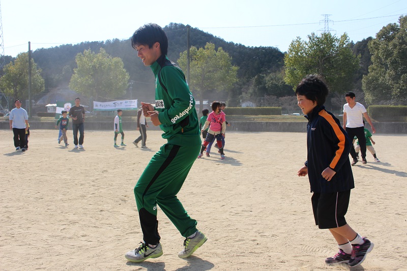 最後は子どもチームと大人チームでミニゲーム。鈴木選手、小川選手は子どもチームの助っ人です。