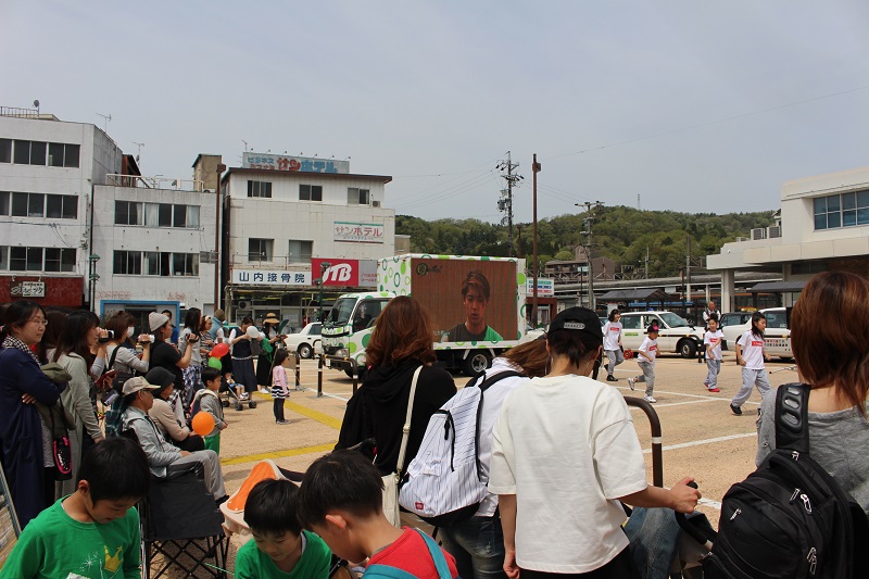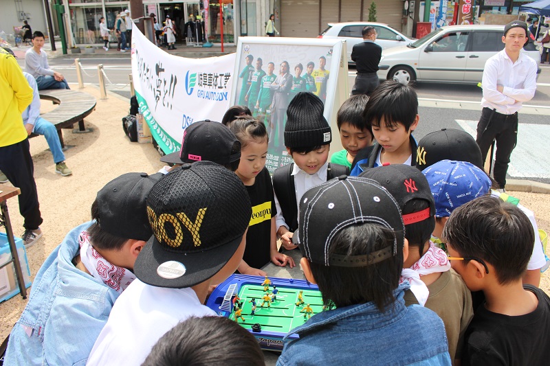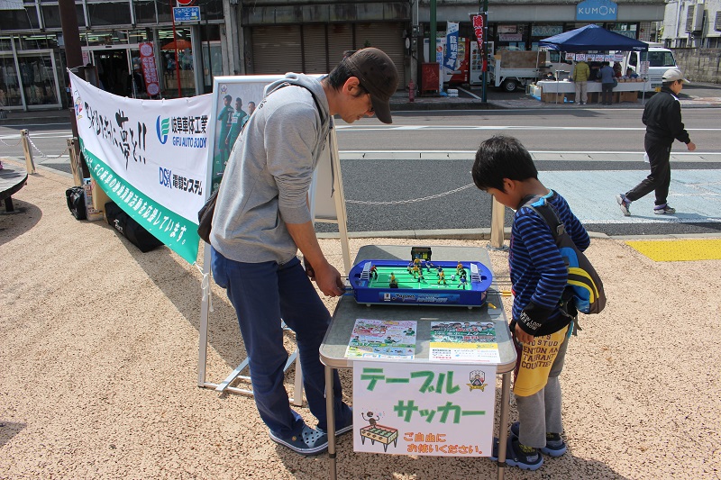 4月16日(土)JR瑞浪駅前で「第5回みずなみ百縁商店街」が開催され、FC岐阜ぎふ元気活動課によるガラガラ抽選会を行いました。
