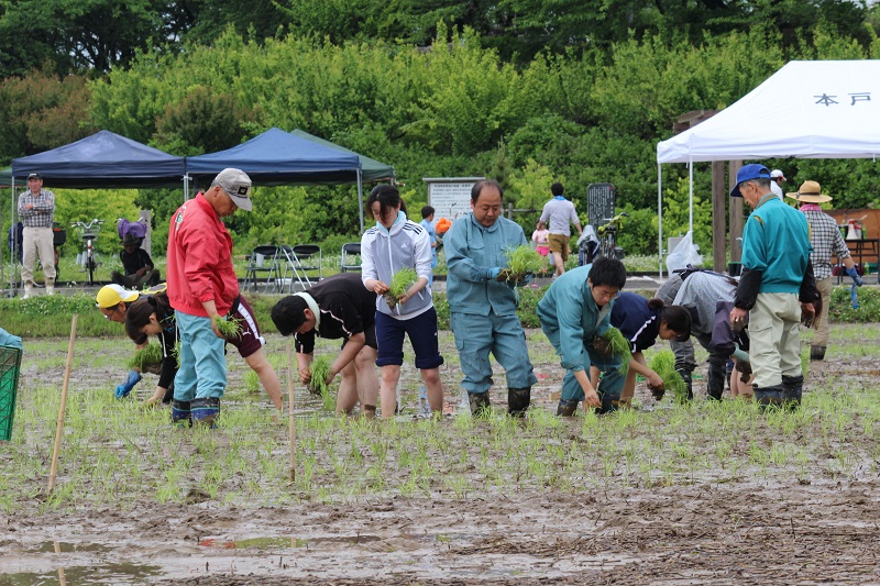 慣れてくると、手際よく黙々と田植え作業に集中することができ、田んぼにも緑が広がって行きました。