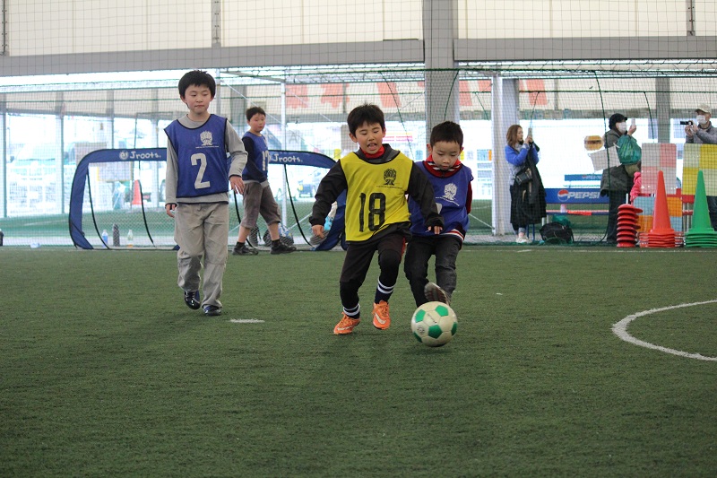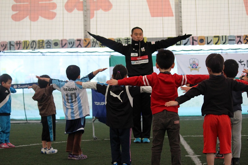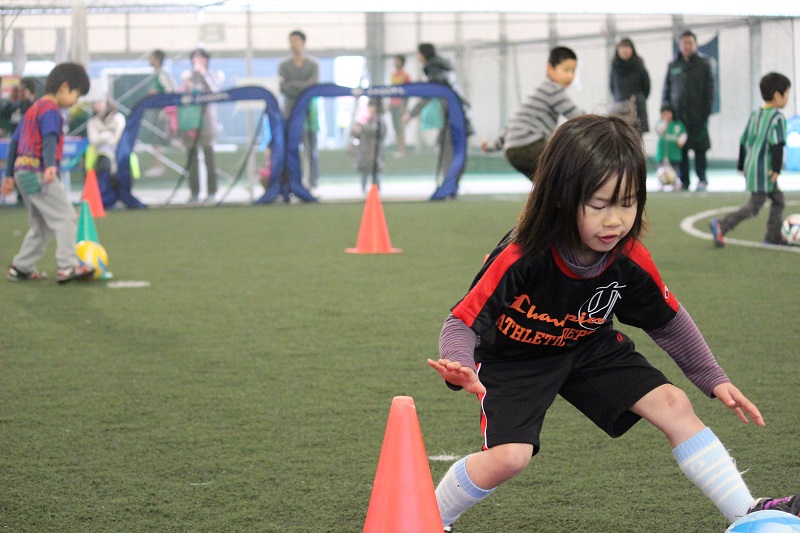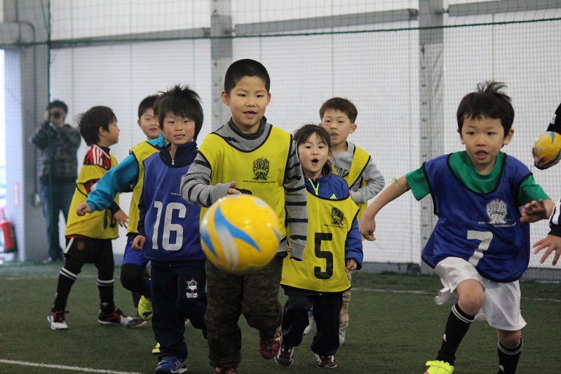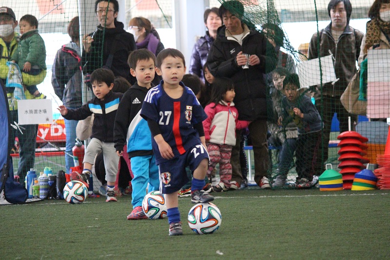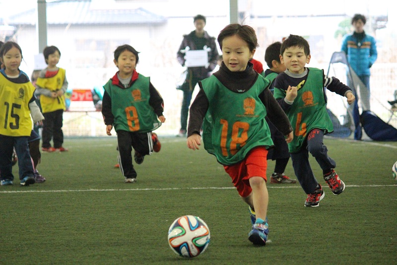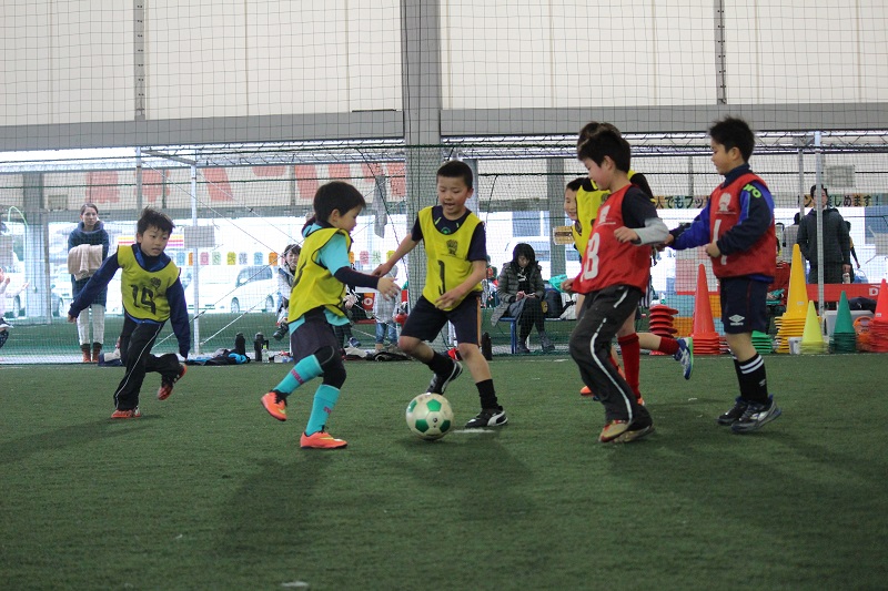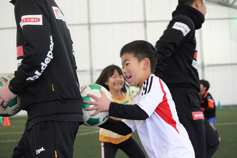 3月7日(土)本巣市にあるフットサルアリーナ本巣にて、年中児から小学4年生を対象にしたFC岐阜主催のサッカー教室が行なわれ、約130名の子どもたちが参加しました。