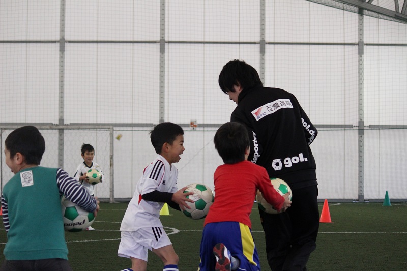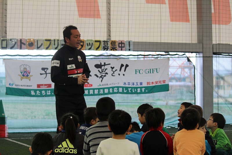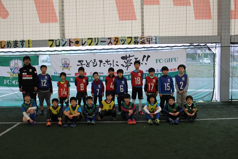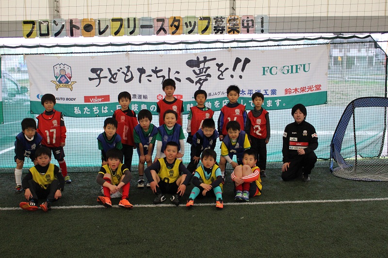 会場となったフットサルアリーナ本巣では年中から小学6年生を対象にしたFC岐阜サッカースクールを毎週木曜日に開催しています。