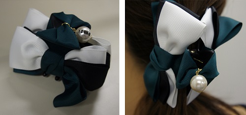 岐阜カラーのグリーンをベースにした3色の色使いが可愛いバレッタ♪