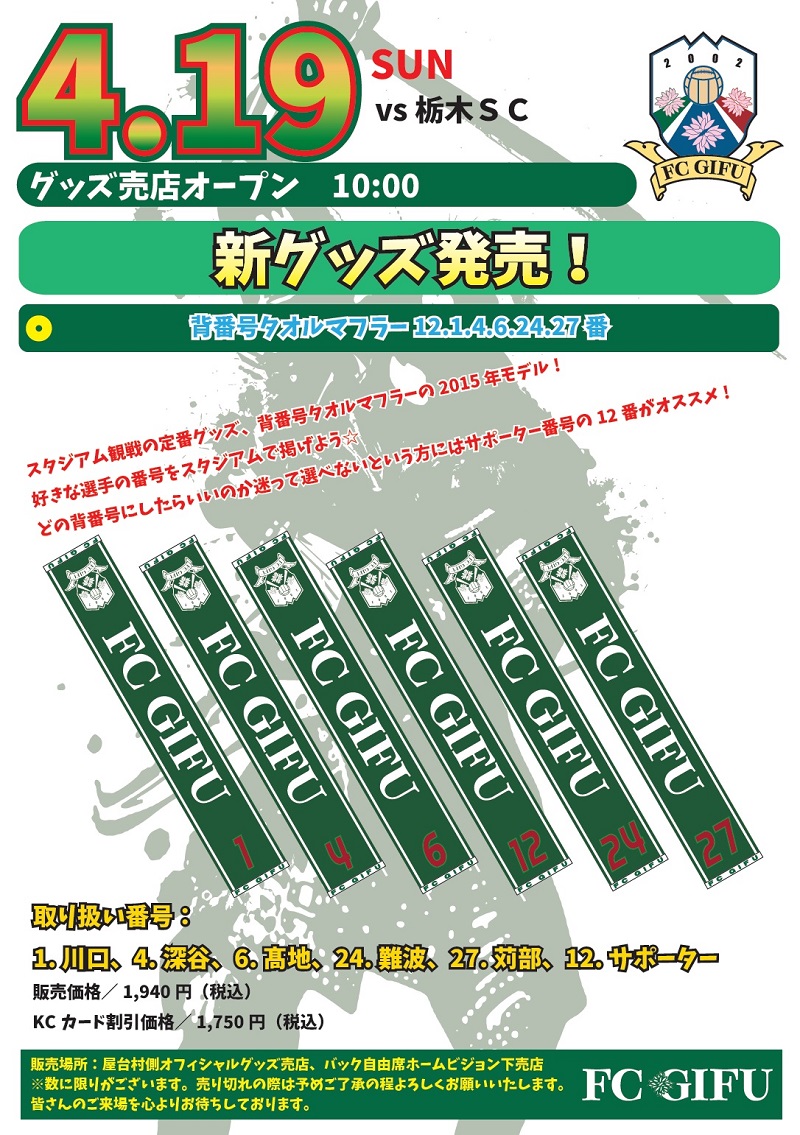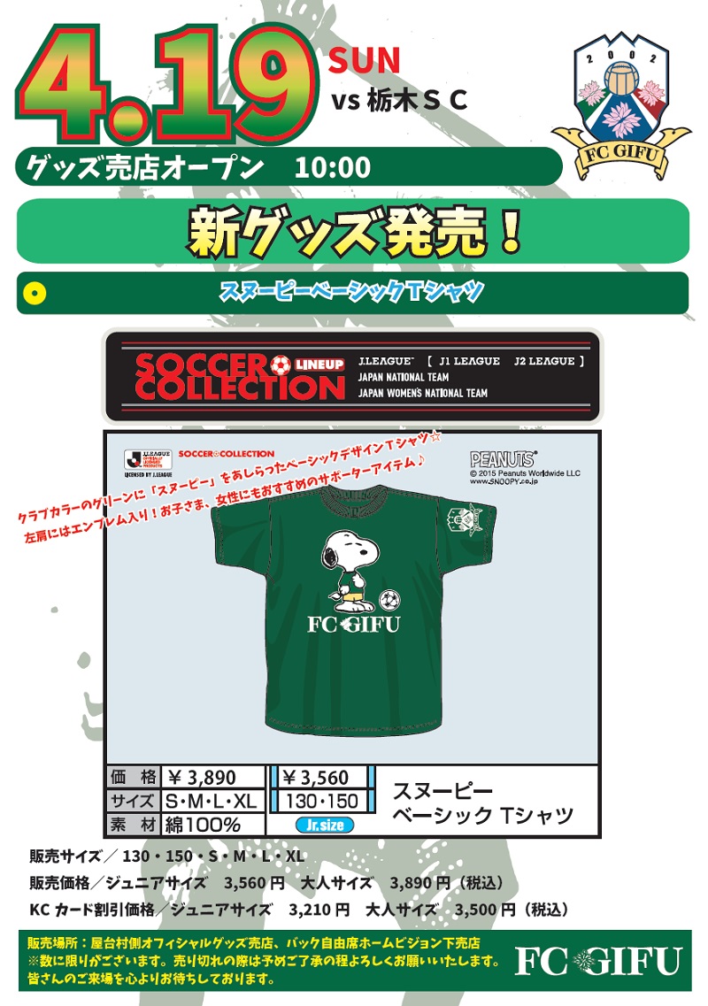 4月19日(日)2015明治安田生命J2リーグ 第8節 vs栃木SC戦におきまして、下記商品を販売いたします。
