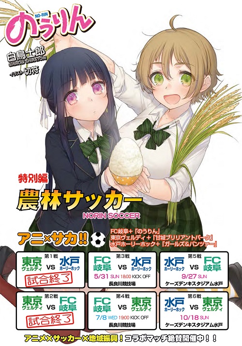 5/31(日)水戸ホーリーホック戦(18:00キックオフ)は、「アニ×サカ!!」第3戦、のうりんコラボマッチとして開催します(詳しくはこちら)。今回は、この「のうりんコラボマッチ」を盛り上げるトピックスをお知らせします!