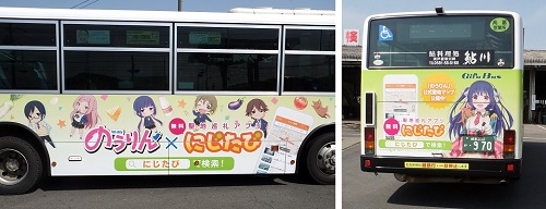 現在、岐阜バス(FC岐阜オフィシャルパートナー)高富線にて、TVアニメ「のうりん」と、聖地巡礼サポートアプリ「にじたび」がコラボレーションをしたラッピングバスが運行中!