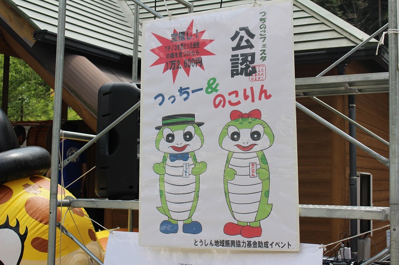 このイベントのメインは「つちのこ捜索大作戦」。ツチノコを型どった金色の板を見つけると賞金が貰えます!本物のツチノコを捕獲した方の賞金は、な、なんと126万円!!一攫千金を目指し、県内外からたくさんの方が参加していました。