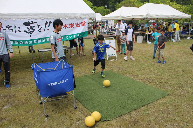 5月3日(日)東白川村の中川原水辺公園で「つちのこフェスタ2015」が開催され、FC岐阜ホームタウン担当によるキックターゲットが行われました。