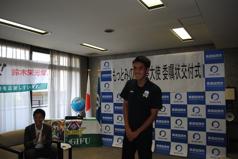 益山選手は、「もっとみのかも夢大使に任命頂き大変光栄に思います。サッカーを通じて美濃加茂市の良さを伝えていきたいです。」と意気込みを話しました。