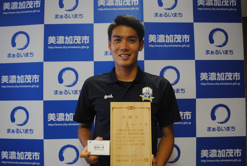 岐阜県美濃加茂市出身の益山司選手が、美濃加茂市「もっとみのかも夢大使」に任命され、5月27日(水)美濃加茂市役所にて委嘱状交付式が行われました。