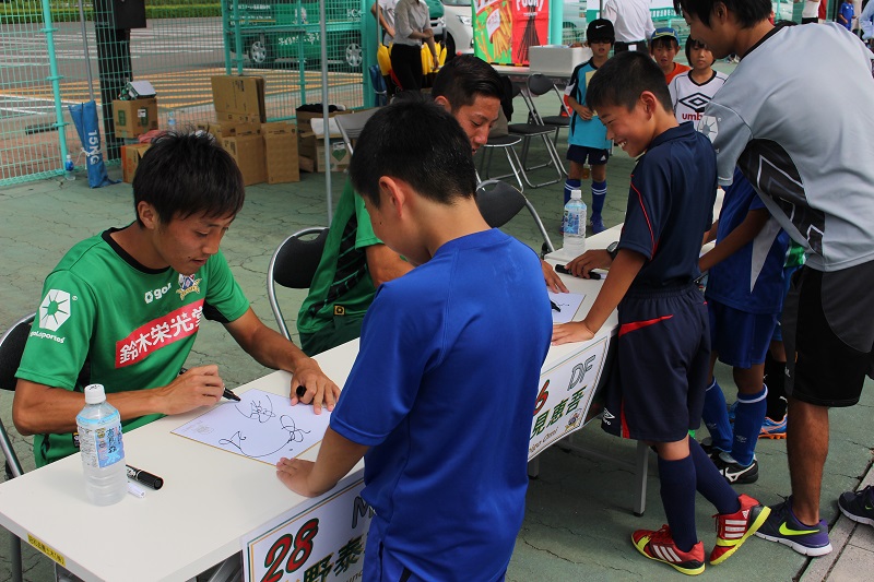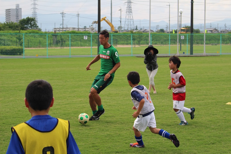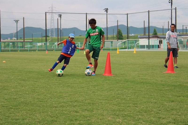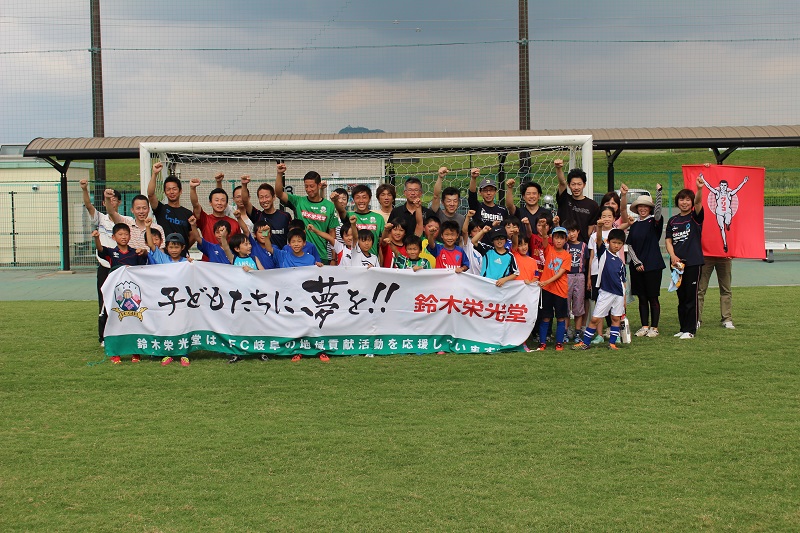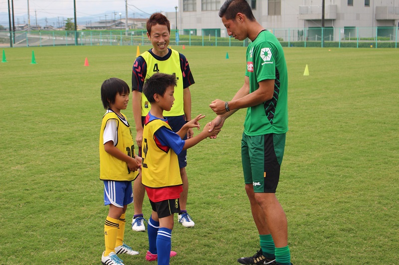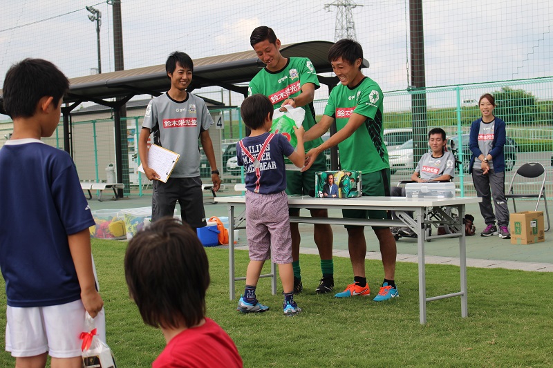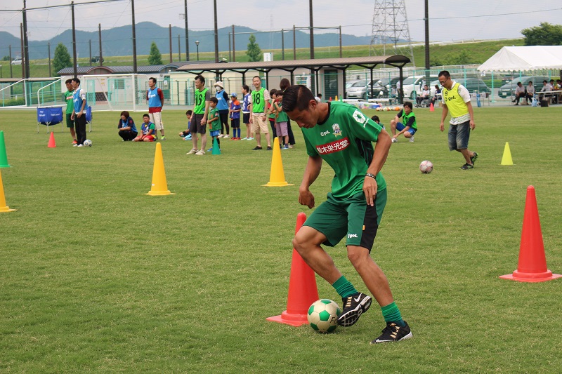 6月20日(土)岐阜市の北西部運動公園で株式会社バロー様・江崎グリコ株式会社様共同企画、昭和造園土木株式会社様後援による「FC岐阜親子サッカー教室」が行われ、小見恵吾 選手、水野泰輔 選手が参加しました。