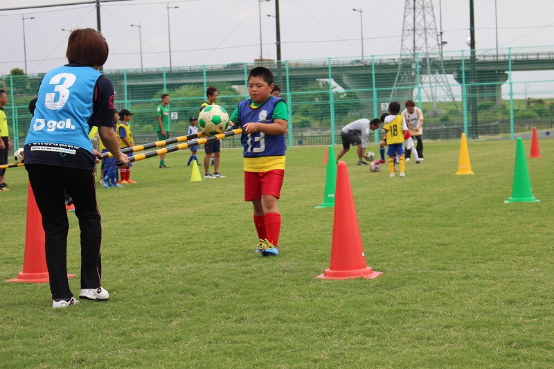 ジグザグドリブルでは、さすがプロのサッカー選手! すごいスピードでコーンを進んでいきます!!