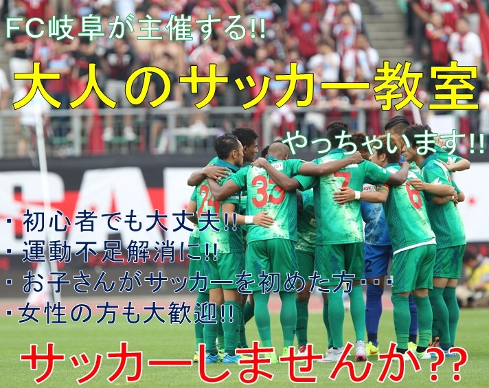 岐阜メモリアルセンターふれ愛ドームにて開催する、FC岐阜スクールコーチによる『大人のサッカー教室』の参加者を募集いたします。